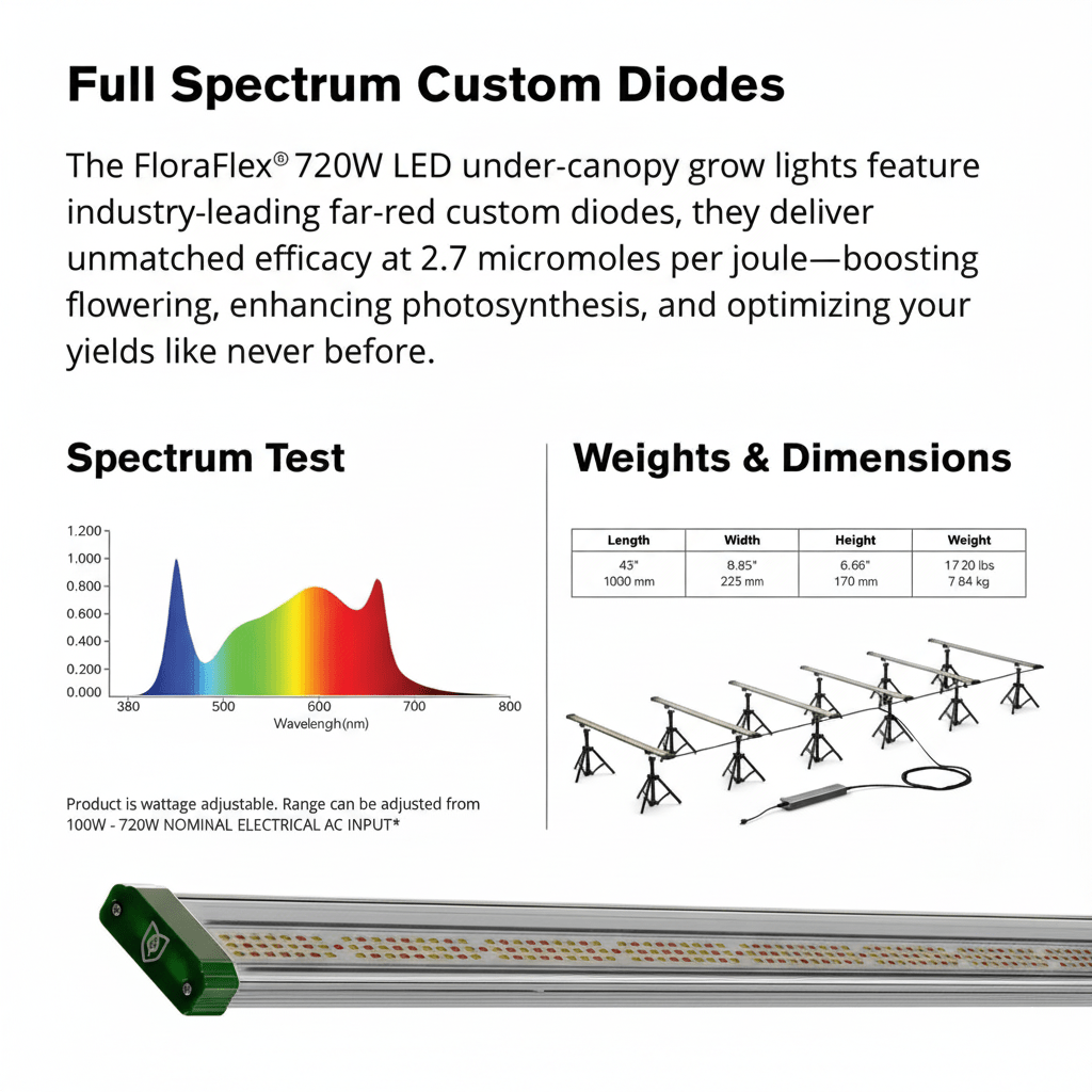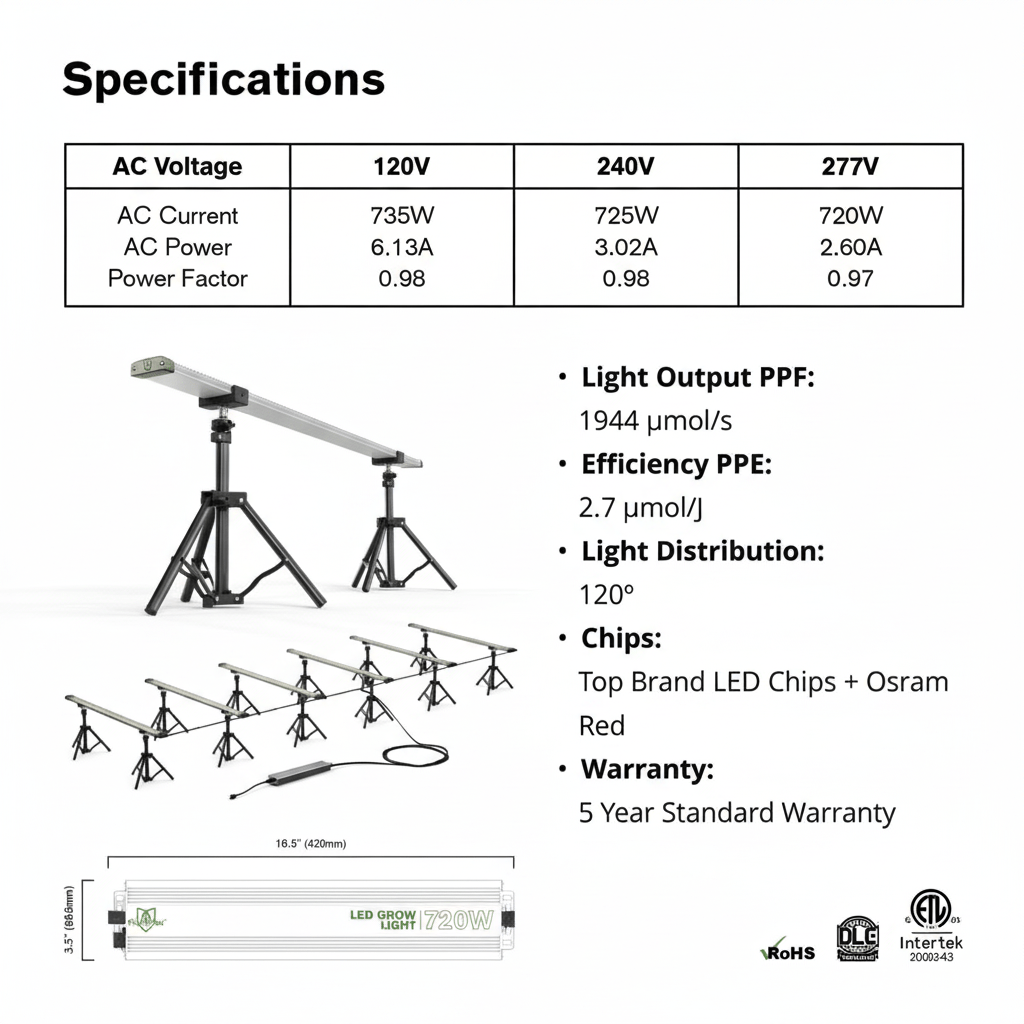- Light Output PPF: 2376 µmol/s